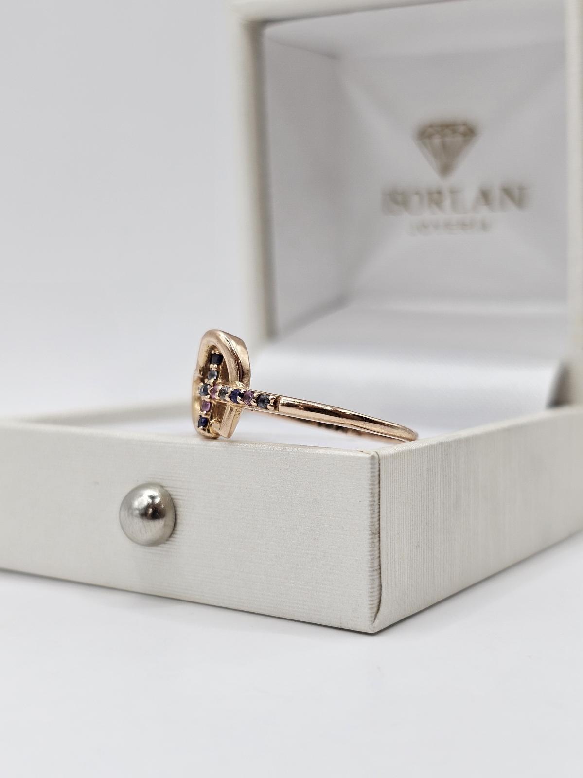 ANILLO ROSE CRUZ CORAZON, PIEDRAS COLORES. TALLA N17.