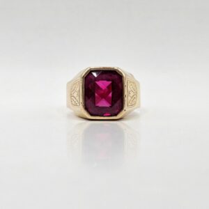 ANILLO SELLO PIEDRA ROJA CON DISEÑOS LATERALES N25,5
